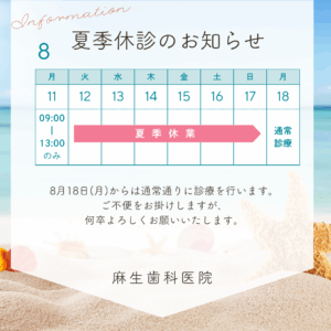 お盆期間の診療スケジュールにつきまして